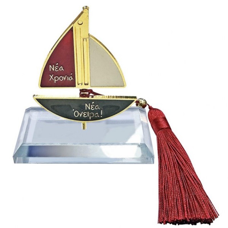 Επιτραπέζιο γούρι καράβι με κρυστάλλινη βάση από την Xmas fest.