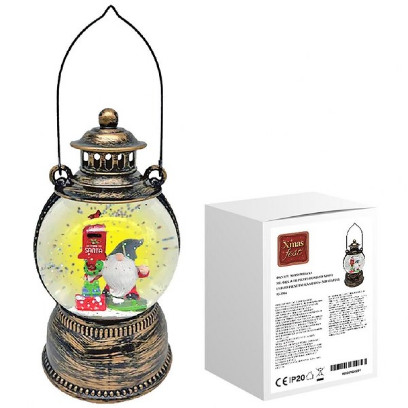 Φανάρι χιονόμπαλα με φως usb - μπαταρίας με παράσταση που περιέχει νερό και χιόνι περιστρεφόμενο από την Xmas fest.