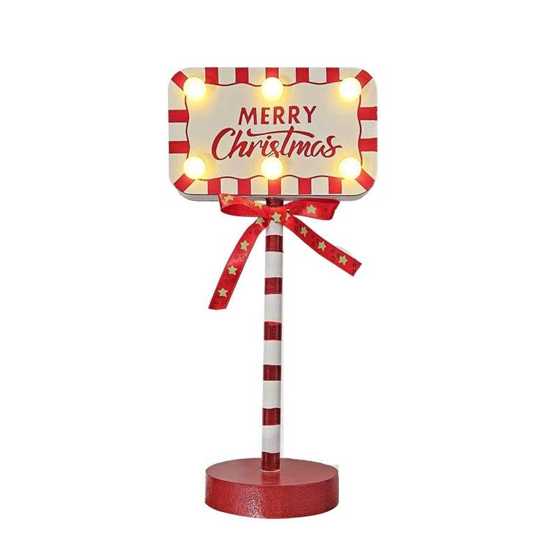 Χριστουγεννιάτικη πινακίδα ξύλινη με επιγραφή Merry Christmas, μπαταρίας με 6 led από την Xmas fest - Διαστάσεις: 11x7x23εκ.