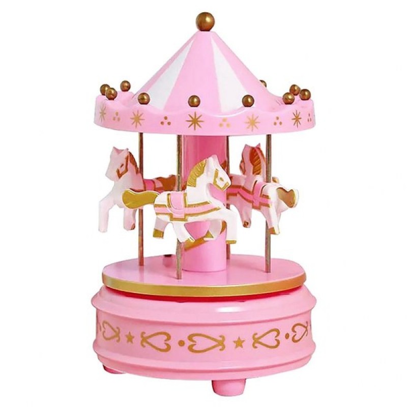 Χριστουγεννιάτικο καρουζέλ κουρδιστό σε ροζ - χρυσό χρώμα από την Xmas fest- Διαστάσεις: 11x16εκ.