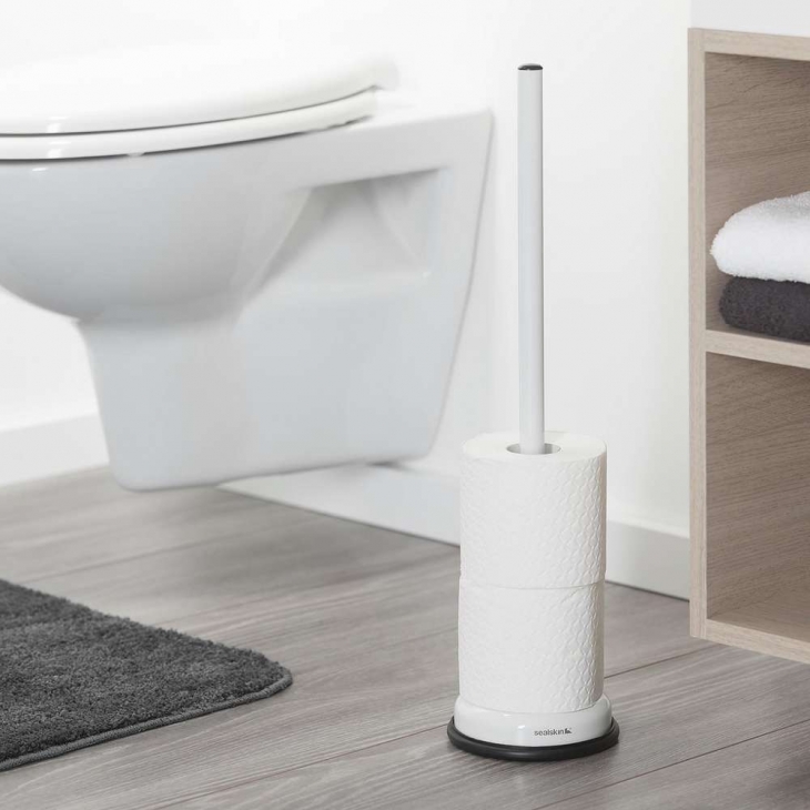Η επιδαπέδια χαρτοθήκη Acero της Sealskin είναι κατασκευασμένη από σίδηρο σε έντονο χρώμα. Το κάτω μέρος της θήκης ρολού έχει έναν ελαστικό δακτύλιο που εξασφαλίζει ότι βρίσκεται σταθερά στη θέση του και δεν γρατζουνάει το πάτωμά σας.