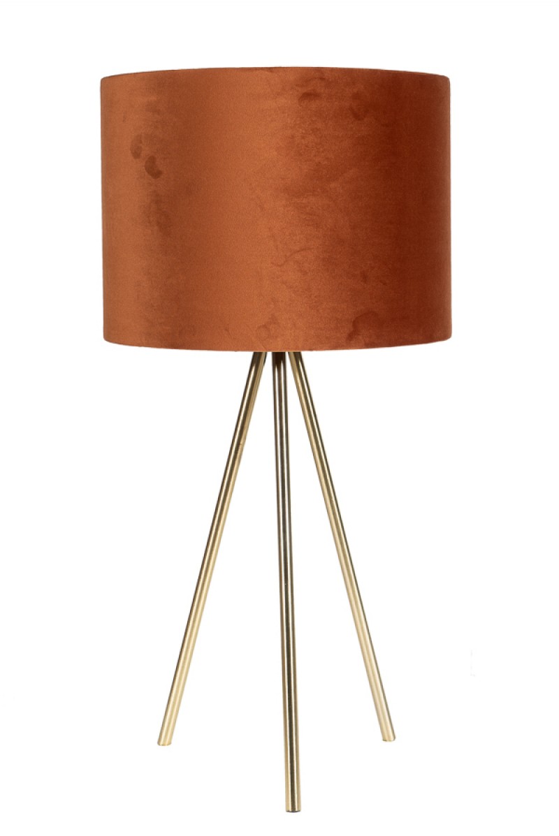 Επιτραπέζιο φωτιστικό με βελούδινο κεραμιδί καπέλο και χρυσό τρίποδο από την Zen Collection - Διαστάσεις: Ύψος 65εκ.