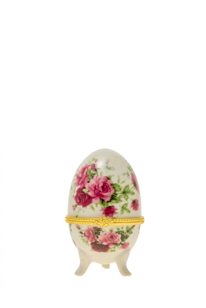 Διακοσμητικό επιτραπέζιο αυγό, πορσελάνης με σχέδιο τριαντάφυλλα σε λευκό - ροζ χρώμα με χρυσή λεπτομέρεια από την Zen Collection - Διαστάσεις: 5x7,5εκ.