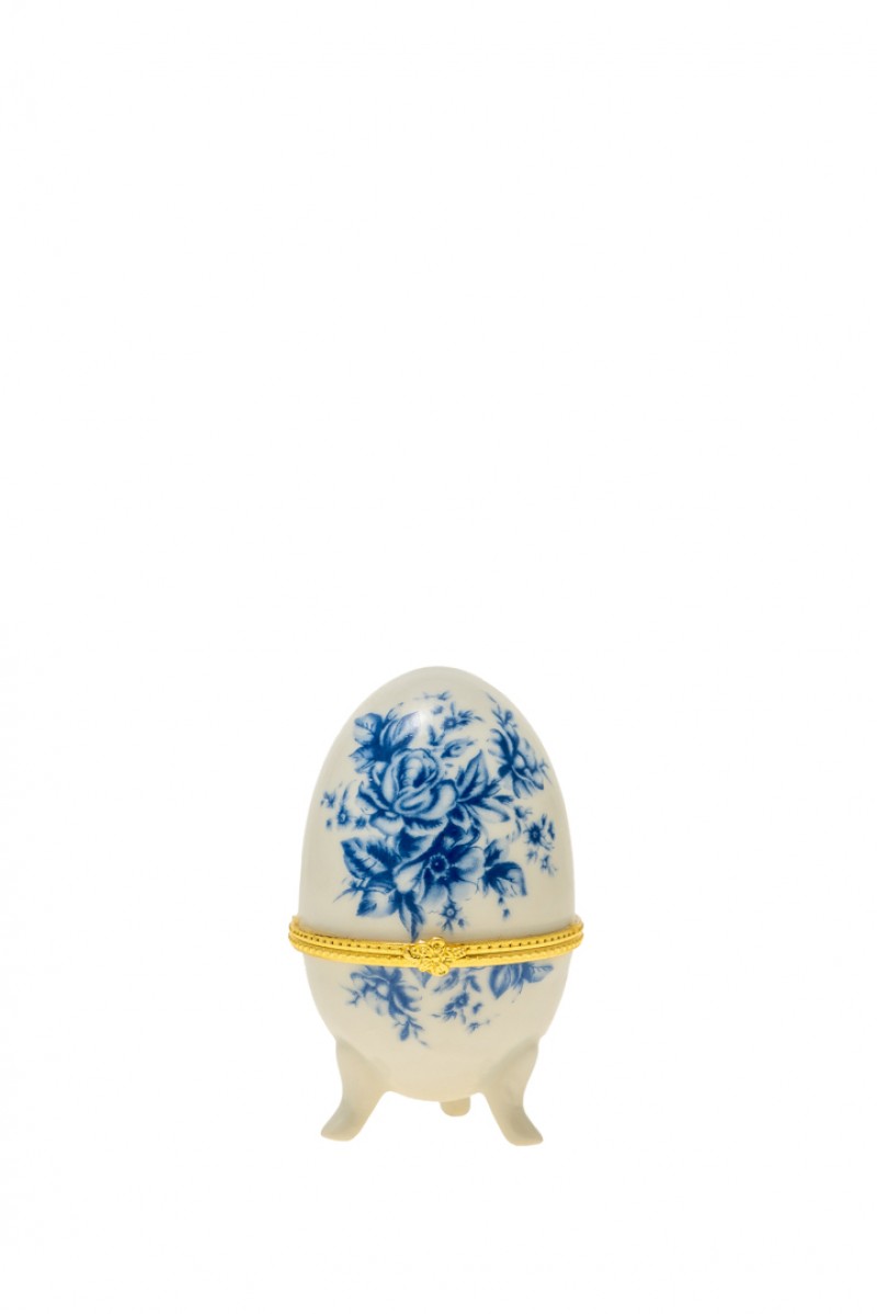 Διακοσμητικό επιτραπέζιο αυγό, πορσελάνης με σχέδιο λουλούδια σε λευκό - μπλε χρώμα με χρυσή λεπτομέρεια από την Zen Collection - Διαστάσεις: 5x7,5εκ.