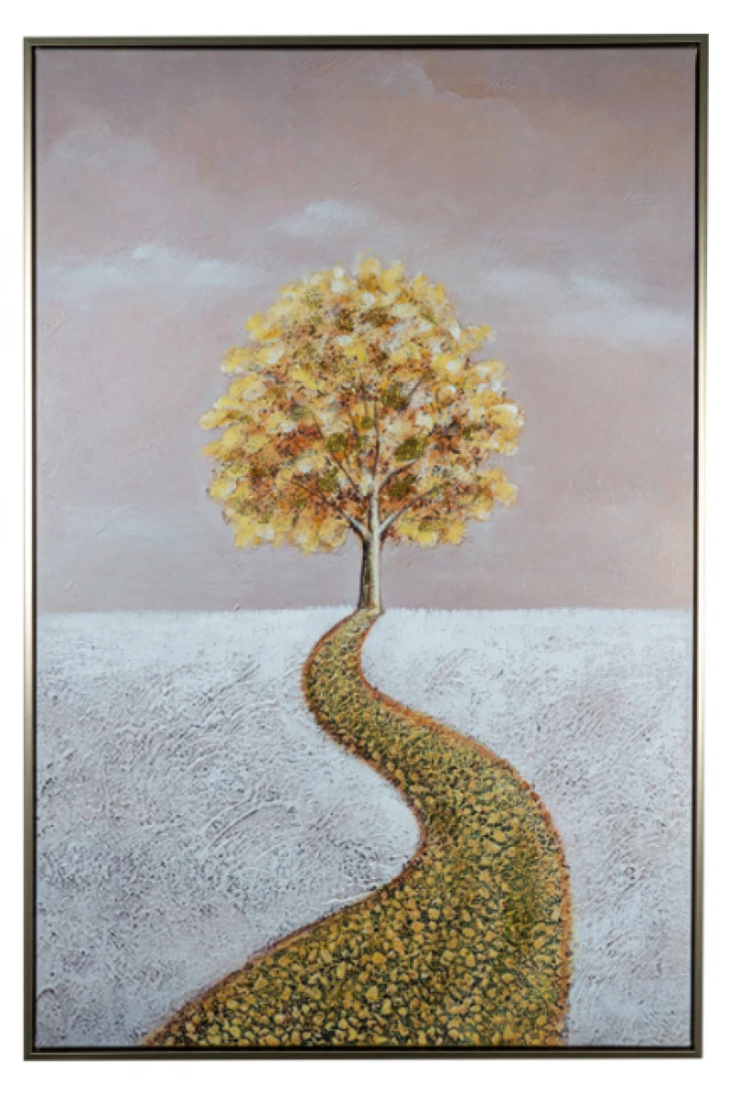 Πίνακας σε καμβά με σχέδιο δέντρο με δρόμο σε χρυσό χρώμα από την Zen Collection - Διαστάσεις: 60x3x90εκ.