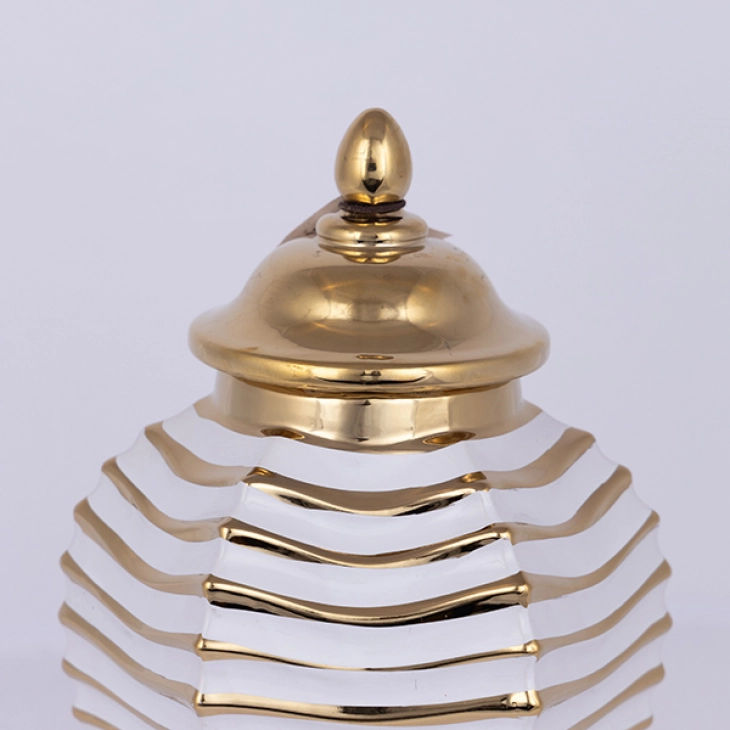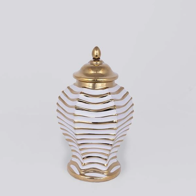 Βάζο κεραμικό με μεταλλικό καπάκι σε λευκό - χρυσό χρώμα από την ESTHETI - Διαστάσεις: 18,3x30εκ.