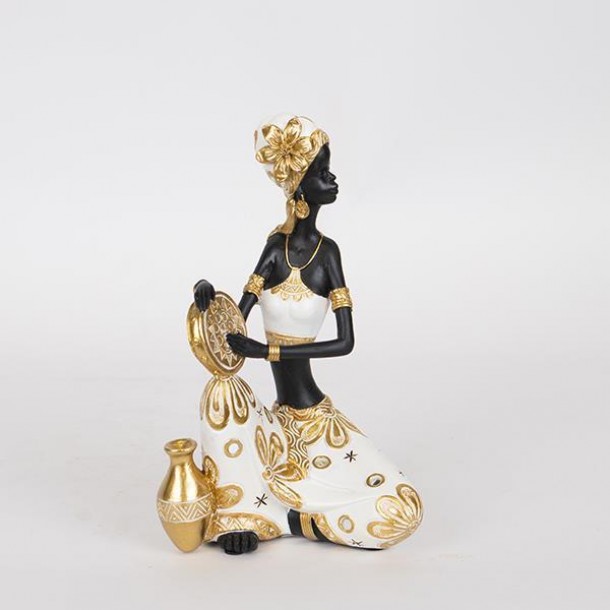 Διακοσμητική Επιτραπέζια Γυναικεία Φιγούρα Polyresin Χρυσή-Μαύρη-Λευκή 14x9x22,5εκ. ESTHETI 752-27047