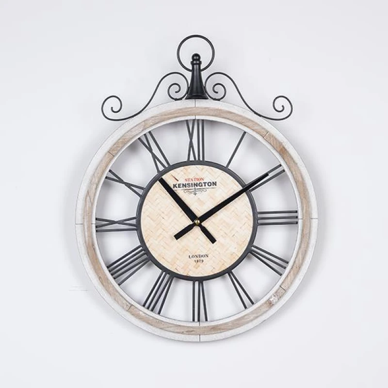 Ρολόι Τοίχου Ξύλινο-Μεταλλικό Αντικέ Natural-Μαύρο 40x4,5x50εκ. ESTHETI 753-10049