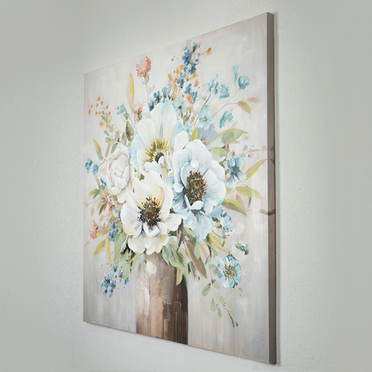 Πίνακας καμβάς με λουλούδια σε μπλε αποχρώσεις και λεπτομέρειες χρυσού από την ESTHETI - Διαστάσεις: 100x3,5x100εκ.