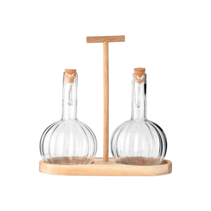 Σετ 2τμχ Δοχεία Για Λάδι-Ξύδι Γυάλινα Με Βάση Ξύλινη 20,5x9,5x21εκ. Allure Estia 01-26264