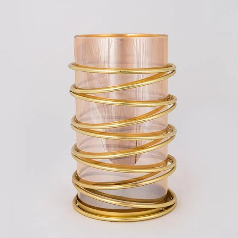 Κηροπήγιο μεταλλικό σε χρυσό χρώμα με γυάλινο μελί δοχείο από την ESTHETI - Διαστάσεις: 13,5x22,5εκ.