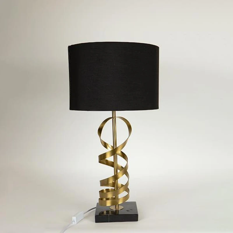 Φωτιστικό επιτραπέζιο με μεταλλική χρυσή βάση και λινό καπέλο σε μαύρο χρώμα από την ESTHETI - Διαστάσεις: 32x60εκ.
