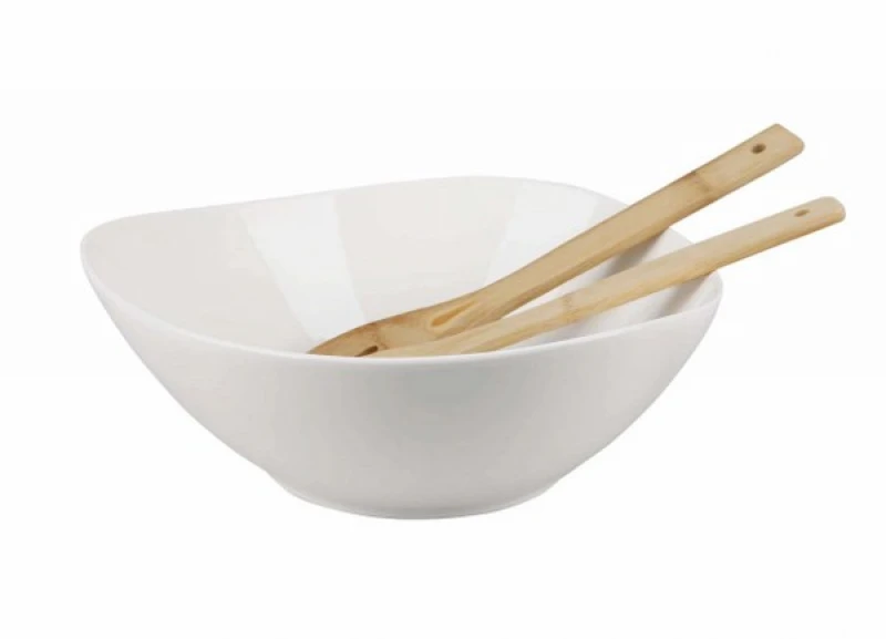 Σαλατιέρα Πορσελάνης Λευκή Με Σετ Κουτάλες Bamboo 28x11εκ. Trio Cryspo Trio 26.000.903