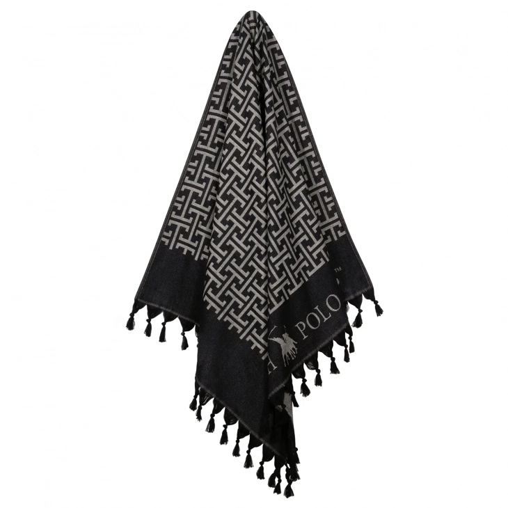 Πετσέτα Θαλάσσης-Παρεό Βαμβακερή 90x170εκ. Essential 4056 Μαύρη-Γκρι Greenwich Polo Club
