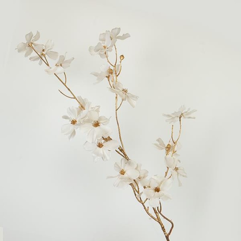 Κλαδί Με Ανθάκια Υφασμάτινο-Πλαστικό 90εκ. Χρυσό-Λευκό ESTHETI 758-12124