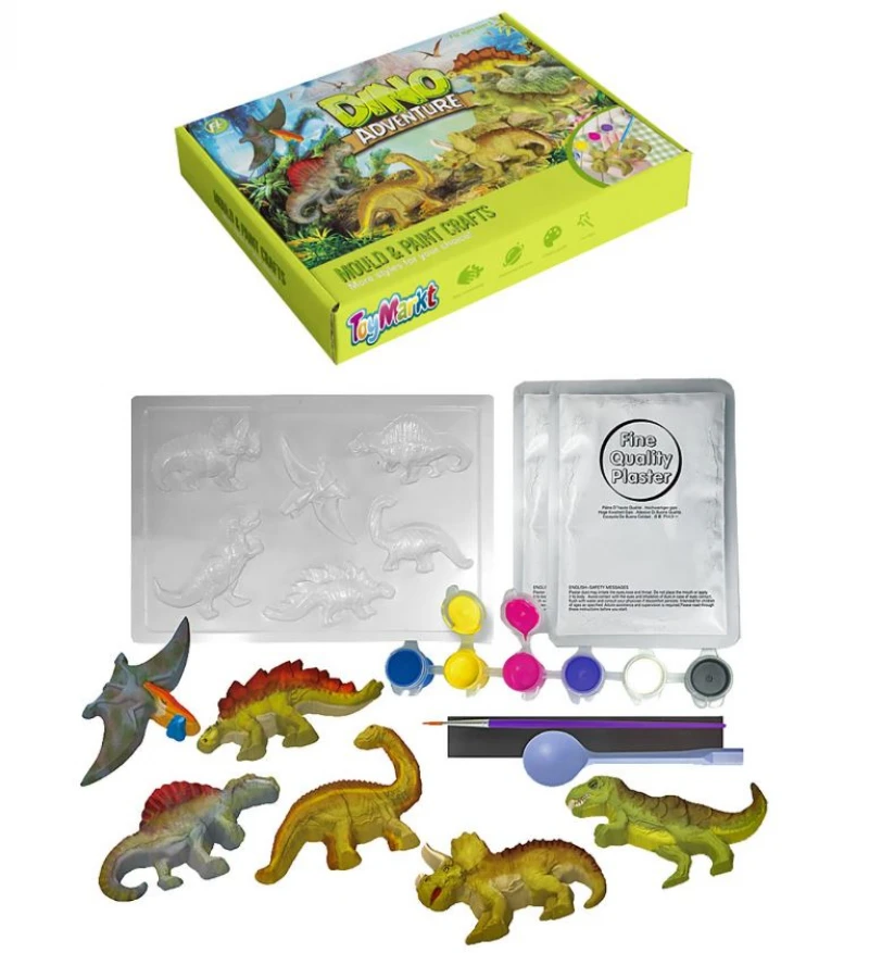 Γύψινα καλούπια χρωματισμού σε σχήμα δεινοσαύρων, ιδανικό για παιδιά άνω των 3 ετών από την Toy Markt - Διαστάσεις συσκευασίας: 27x18x5εκ.
