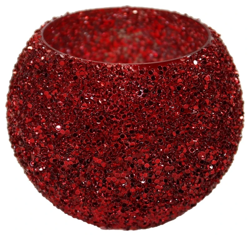 Κηροπήγιο γυάλινο strass σε κόκκινο χρώμα από την Art Et Lumiere - Διαστάσεις: 16x12εκ.