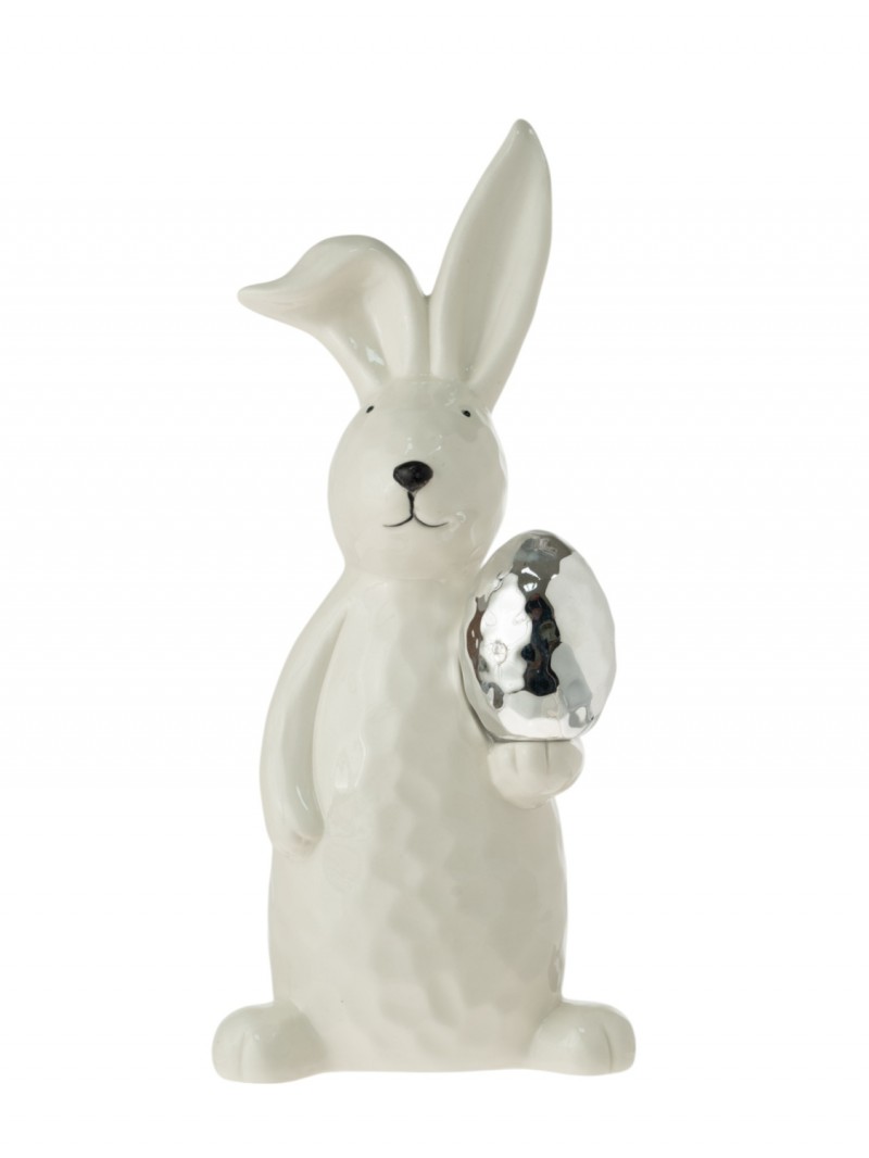 Διακοσμητικός πασχαλινός λαγός με αυγό, κεραμικός σε λευκό - ασημί χρώμα από την Zen Collection - Διαστάσεις: 9,8x9,8x22,3εκ. - Η ελάχιστη ποσότητα αγοράς για αυτό το προϊόν είναι 2τμχ.