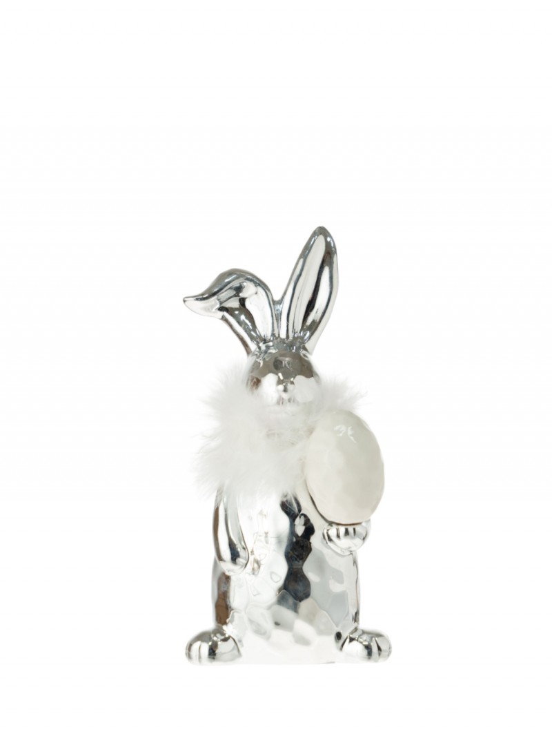 Διακοσμητικός πασχαλινός λαγός, κεραμικός με πούπουλα σε λευκό - ασημί χρώμα από την Zen Collection - Διαστάσεις: 9,8x9,8x22,3εκ. - Η ελάχιστη ποσότητα αγοράς για αυτό το προϊόν είναι 2τμχ.
