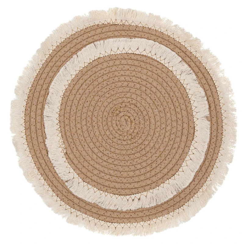 Σουπλά Ψάθινο Boho Λευκό-Μπεζ Φ35εκ. iliadis 90099