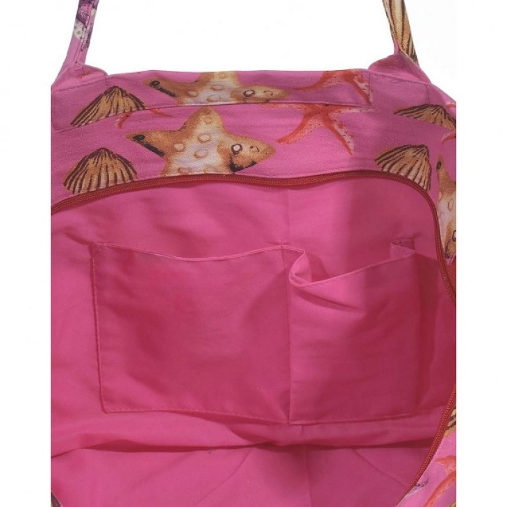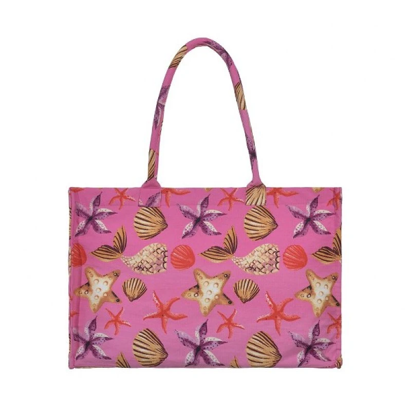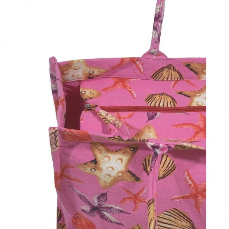 Τσάντα Θαλάσσης Polycotton Ροζ Με Κοχύλια ble 5-42-304-0246