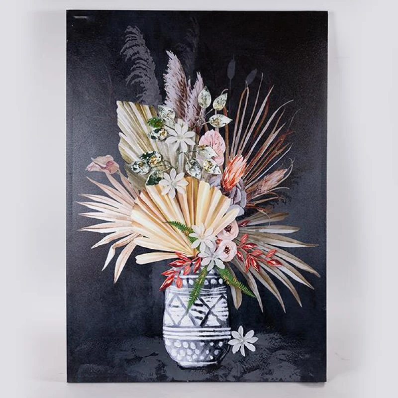 Πίνακας Καμβάς Βάζο Με Λουλούδια Multi-Μαύρος 70x3x100εκ. ESTHETI 755-12205