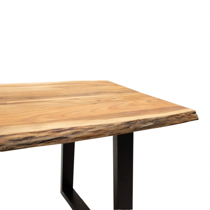Τραπέζι Miles pakoworld μασίφ ξύλο ακακίας 3.7-4εκ σε φυσική απόχρωση με μαύρα μεταλλικά πόδια 180x90x76εκ