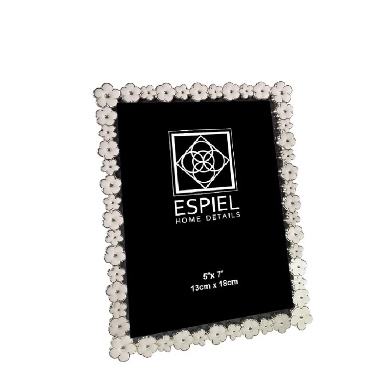 Κορνίζα μεταλλική σε ασημί - λευκό χρώμα με σχέδιο λουλουδάκι από την ESPIEL - Διάσταση φωτογραφίας: 10x15εκ.