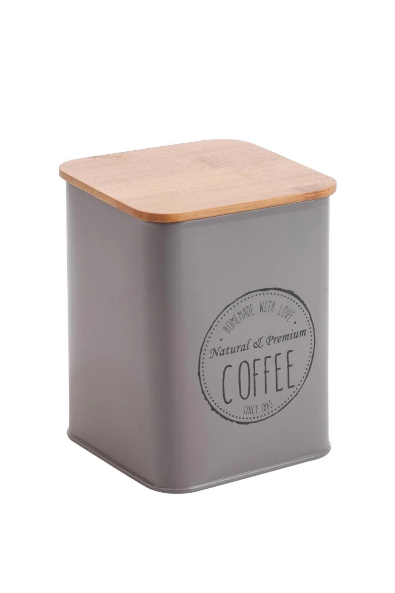 Βάζο για καφέ μεταλλικό σε γκρι χρώμα με καπάκι από ξύλο bamboo, της σειράς Kitchen Trend από την Oriana Ferrelli - Διαστάσεις: 10x10x13,5εκ.