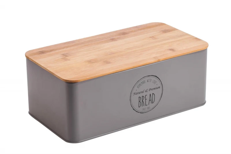 Ψωμιέρα μεταλλική σε γκρι χρώμα με bamboo καπάκι natural από την Oriana Ferrelli - Διαστάσεις: 42,3x23x12,7εκ.