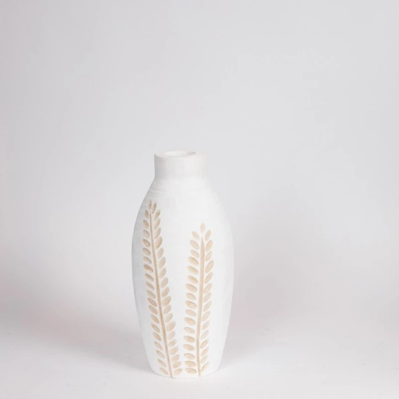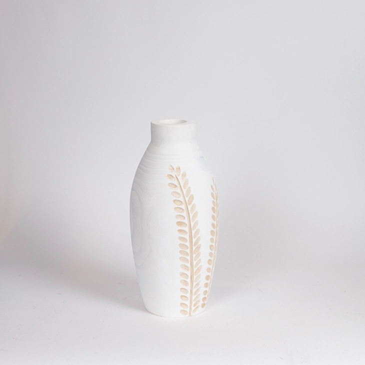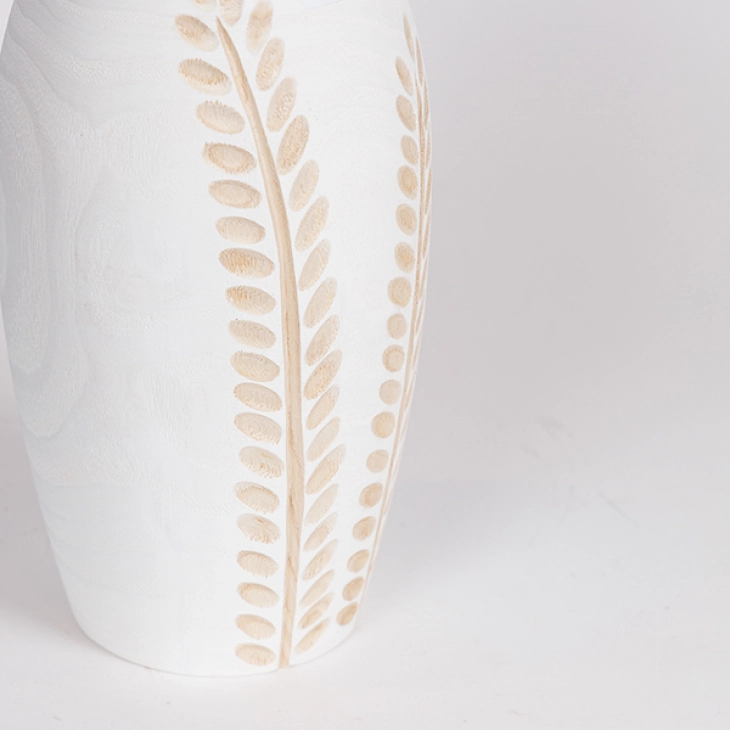 Βάζο ξύλινο λευκό, με σχέδιο σε φυσικό χρώμα από την ESTHETI - Διαστάσεις: 13x13x30εκ.