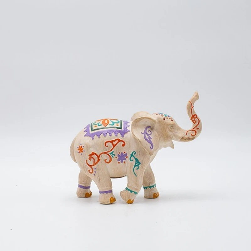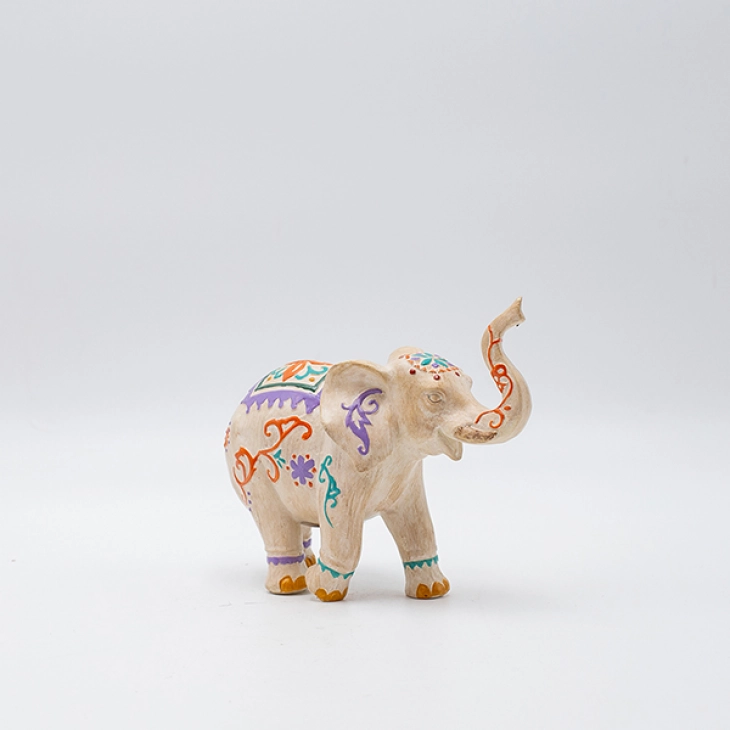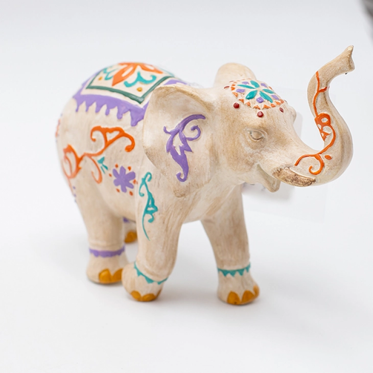 Διακοσμητικό επιτραπέζιο ελέφαντας polyresin σε κρεμ χρώμα με πολύχρωμα σχέδια από την ESTHETI - Διαστάσεις: 15,5x6x13εκ.