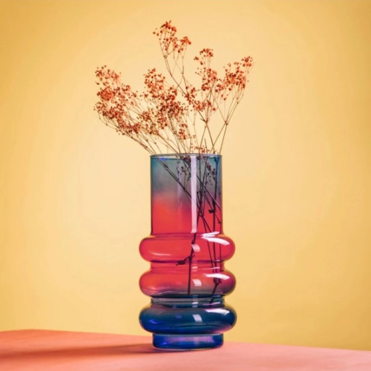 Βάζο γυάλινο σε κόκκινο-μπλε ombre χρώμα από την Homla - Διαστάσεις: 11x26εκ.