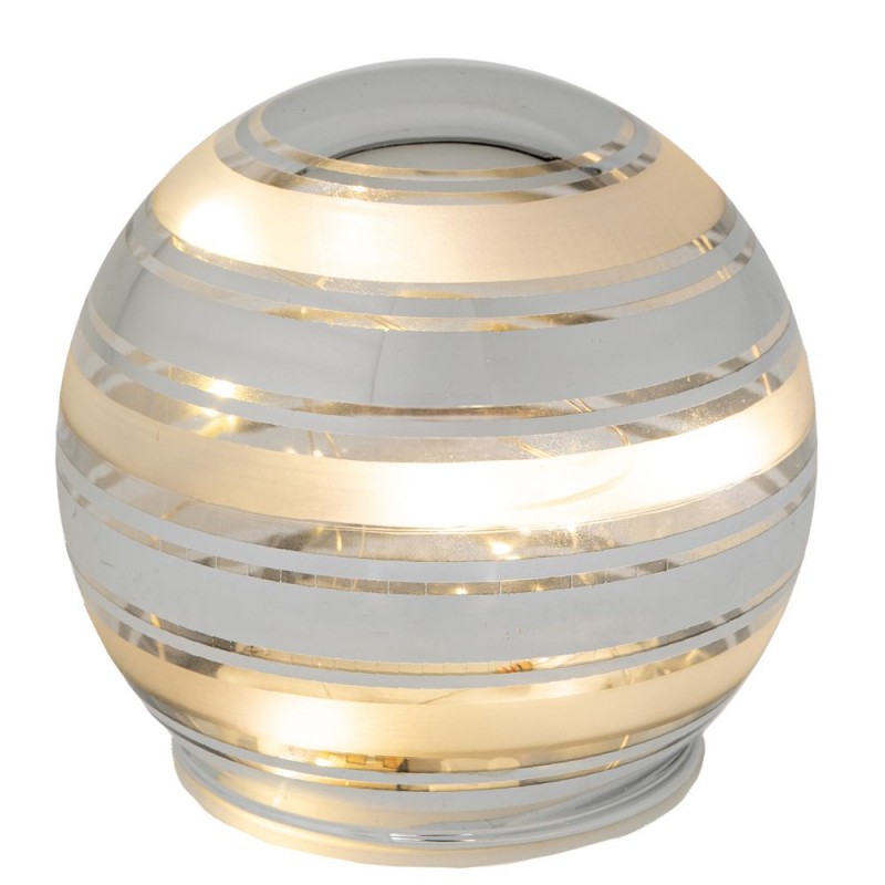 Χριστουγεννιάτικη γυάλινη μπάλα σε λευκό χρώμα με ασημί ρίγα ζωγραφισμένη στο χέρι και led φως μπαταρίας από την iliadis - Διαστάσεις: Φ10εκ.