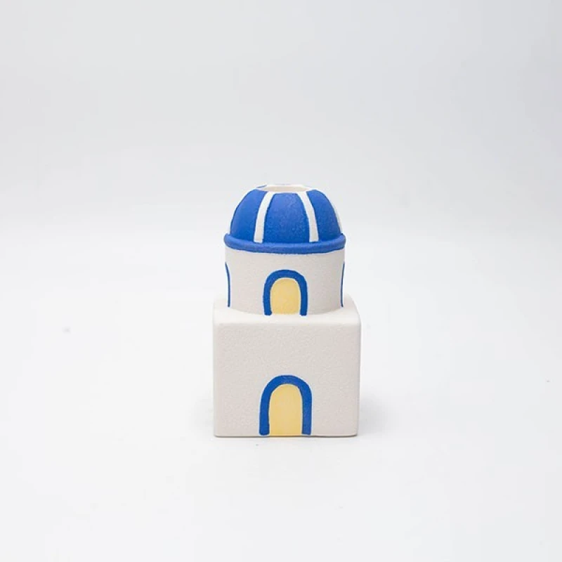 Επιτραπέζιο διακοσμητικό σπιτάκι πορσελάνης με led σε λευκό - μπλε χρώμα από την ESTHETI - Διαστάσεις: 8,4x8,4x20,5εκ.