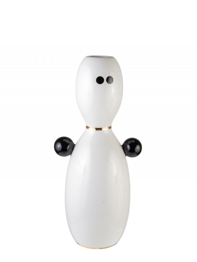 Βάζο ανθρωπάκι κεραμικό σε λευκό-μαύρο-χρυσό χρώμα από την Zen Collection - Διαστάσεις: 14x11x30,5εκ.