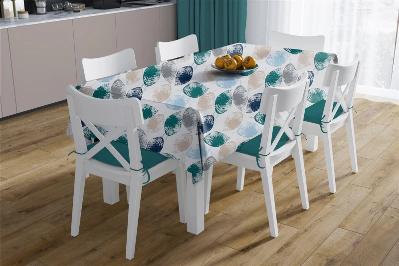 Σετ 2τμχ Τραπεζομάντηλο & Runner Polycotton Αλέκιαστο 140x140εκ.-40x140εκ. Leaves 466 Petrol DimCol