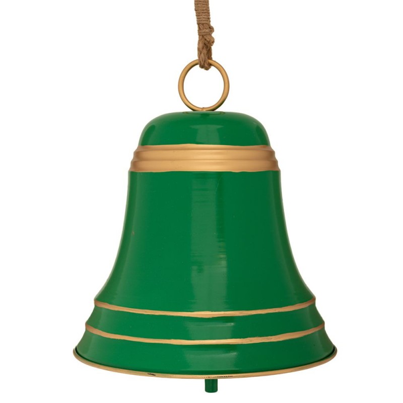 Χριστουγεννιάτικη καμπάνα κρεμαστή μεταλλική σε πράσινο-χρυσό χρώμα από την iliadis - Διαστάσεις: 31x31x34εκ.