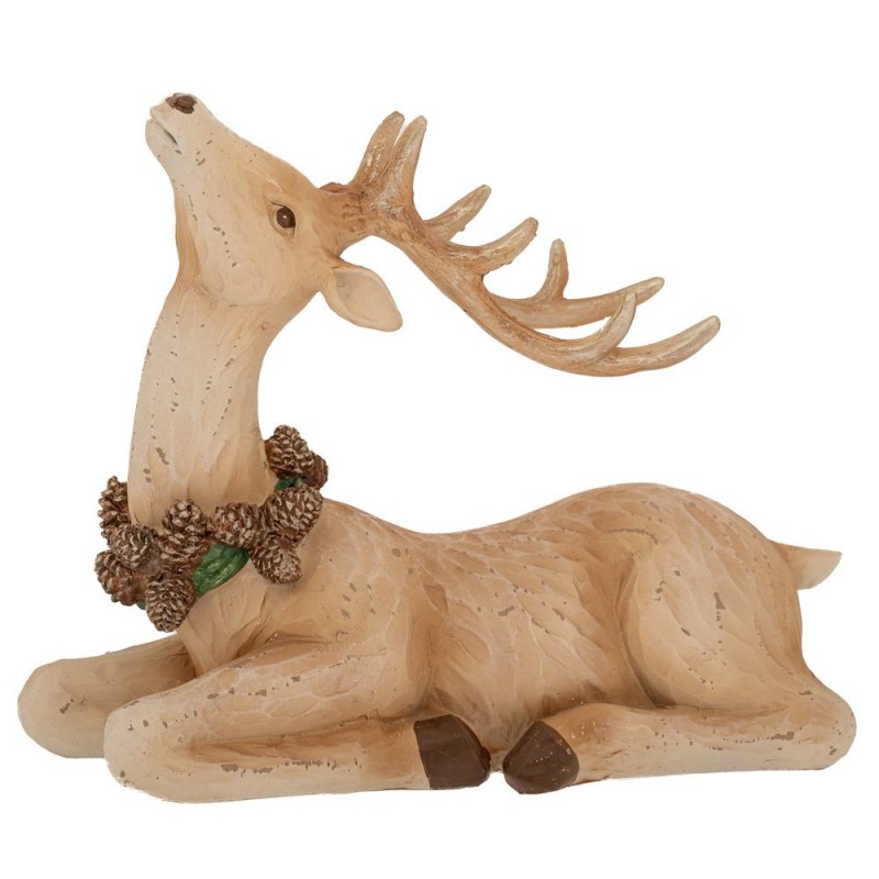 Χριστουγεννιάτικο διακοσμητικό ελάφι polyresin σε ιβουάρ χρώμα με χρυσές λεπτομέρειες από την iliadis - Διαστάσεις: 21,5x10x16,5εκ.