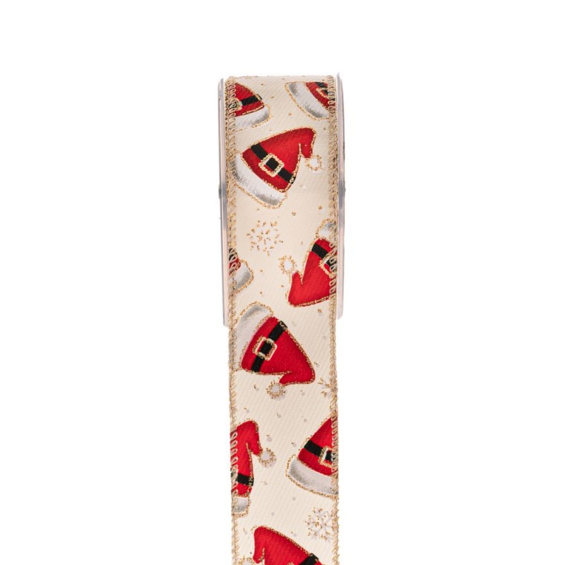 Χριστουγεννιάτικη κορδέλα santa hat σε κόκκινο-χρυσό-εκρού χρώμα από την iliadis - Διαστάσεις: 4,5εκ.-9μ.