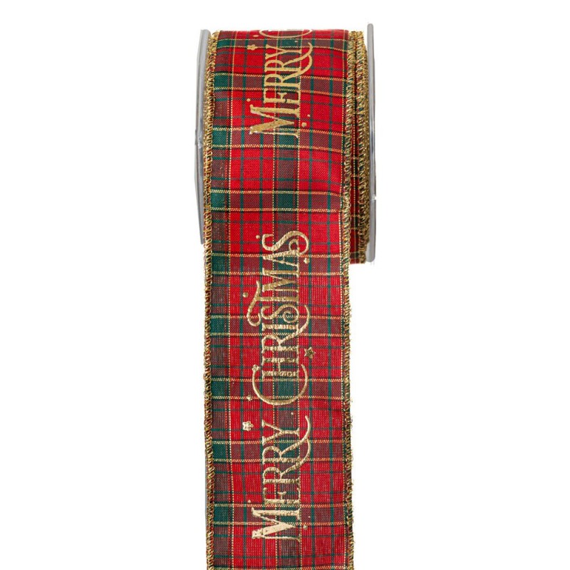 Χριστουγεννιάτικη κορδέλα Merry Christmas σε κόκκινο-πράσινο χρώμα από την iliadis - Διαστάσεις: 6εκ.-9μ.