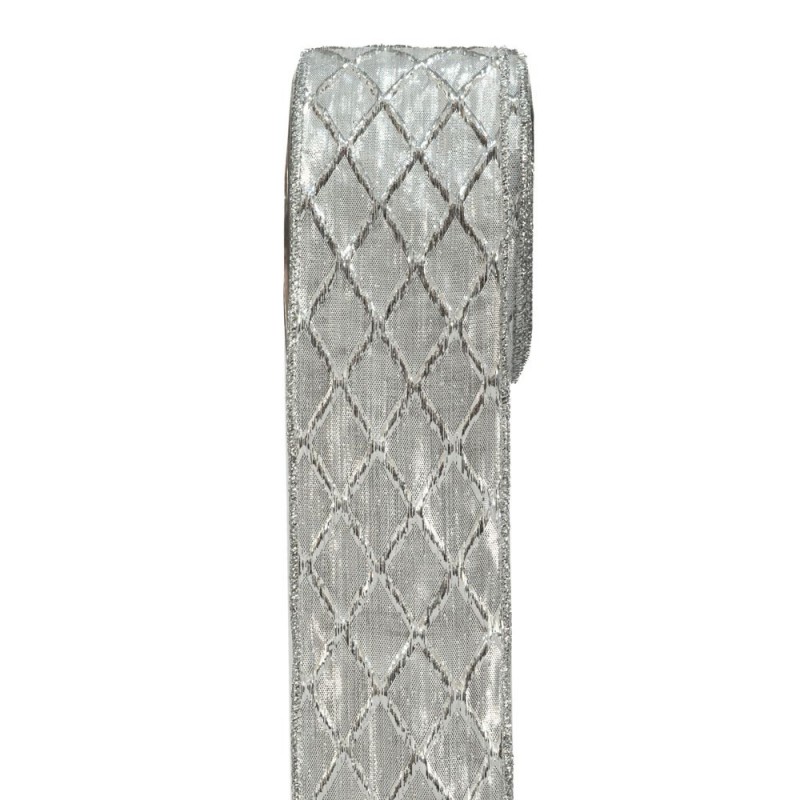 Χριστουγεννιάτικη κορδέλα cressida σε ασημί χρώμα από την iliadis - Διαστάσεις: 6,7εκ.-9μ.