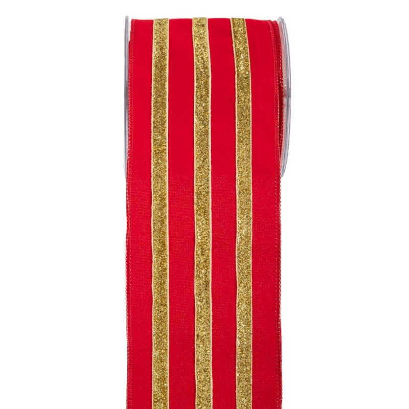 Χριστουγεννιάτικη κορδέλα βελουτέ lined σε κόκκινο-χρυσό χρώμα από την iliadis - Διαστάσεις: 10εκ.-4,5μ.