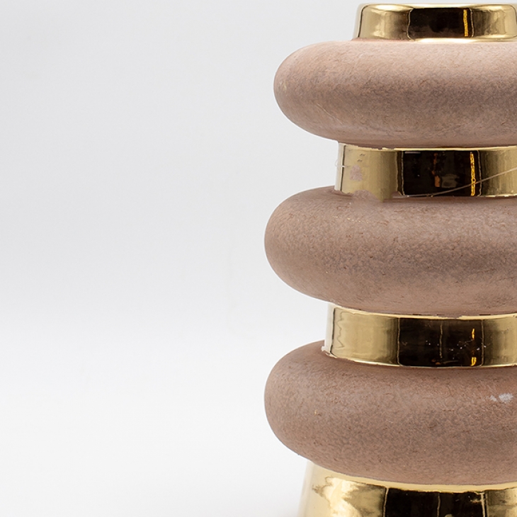 Βάζο κεραμικό στο χρώμα της άμμου με χρυσές λεπτομέρειες από την ESTHETI - Διαστάσεις: 16x16x24εκ.