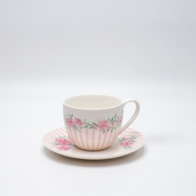 Φλυτζάνι τσαγιού με πιατάκι, πορσελάνης σε λευκό - ροζ χρώμα με σχέδιο ανθάκια από την ESTHETI - Χωρητικότητας: 230ml. - Η ελάχιστη ποσότητα αγοράς για αυτό το προϊόν είναι 3τμχ.