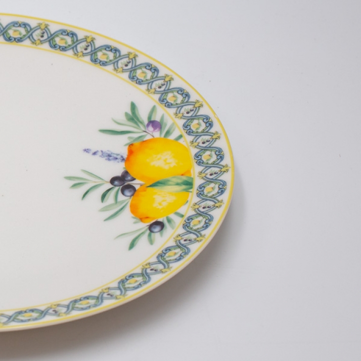 Πιάτο ρηχό φαγητού πορσελάνης σε λευκό χρώμα με πολύχρωμα σχέδια και κίτρινα λεμόνια από την ESTHETI - Διαστάσεις: 26εκ. - Η ελάχιστη ποσότητα αγοράς για αυτό το προϊόν είναι 2τμχ.