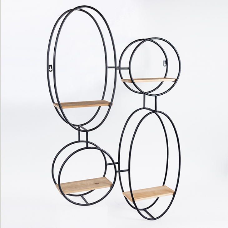 Ραφιέρα Τοίχου Μεταλλική-Ξύλινη Μαύρη-Natural 56,5x12x92εκ. ESTHETI 750-31527