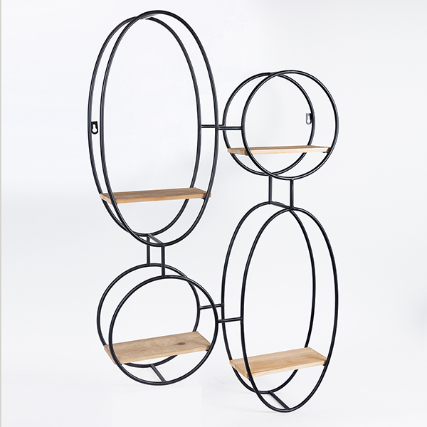 Ραφιέρα μεταλλική σε μαύρο χρώμα με ξύλινα ράφια σε φυσικό χρώμα από την ESTHETI - Διαστάσεις: 56,5x12x92εκ.