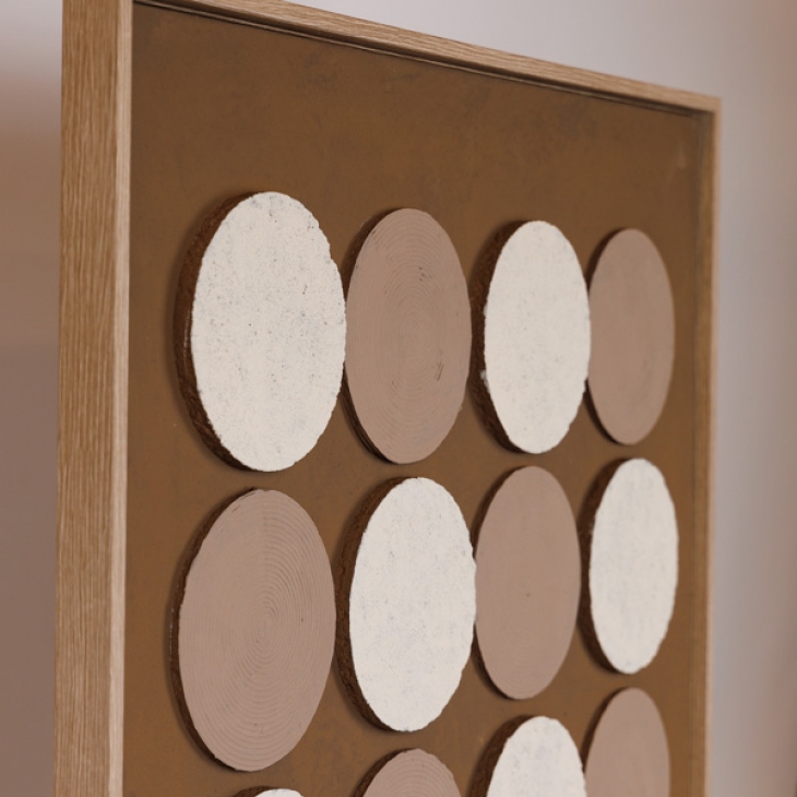 Πίνακας καμβάς με ξύλινο πλαίσιο, με σχέδιο 3d κύκλους σε καφέ - μπεζ χρώμα από την ESTHETI - Διαστάσεις: 60x2,9x80εκ.