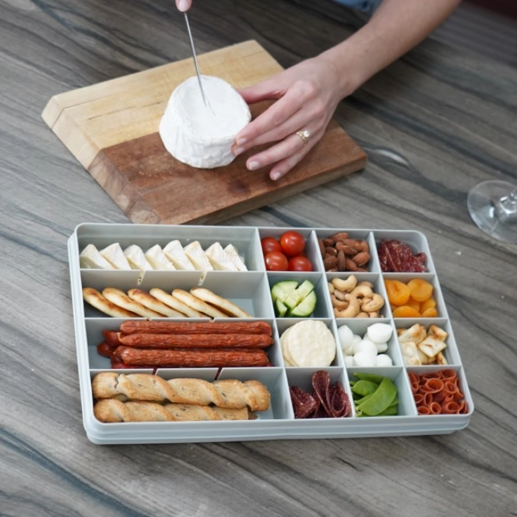 Φαγητοδοχείο Πλαστικό Με Χωρίσματα Για Έως 24 Θήκες 114ml Snackle Box Extra Large Grey Melii MEL19120